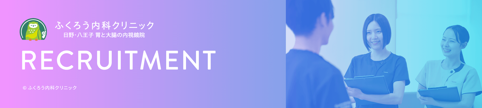 | 選考の流れ | (1)応募 ・求人応募フォームよりご応募ください。 (2)書類選考 ・履歴書、職務経歴書のご準備をお願いいたします。 (3)一次面接 ・書類選考をもとにご案内いたします。 ・面接方法:web ※対面ご希望の場合はご相談ください (4)二次面接 ・面接方法:対面 ・場所:ふくろう内科クリニック(日野市多摩平3-1-1) ・実施内容:面接、院内ラウンド等 (5)内定 ・入職前の制服サイズ合わせ等で別途お時間いただきます。 |